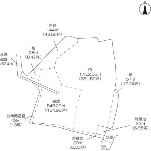| 土地面積 | 公簿 2,021.20㎡ | 坪数 | 611.41坪 | 坪単価 | 0.41万円 |